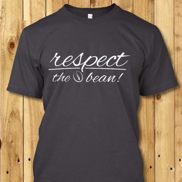 Respect the Bean! : This t-shirt was created to give special respect to the bean, our important coffee bean! Such a small bean but can make even the “big boys” smile. It’s great to give a moment, a minute or a t-shirt to show our respect to our important – Coffee Bean!